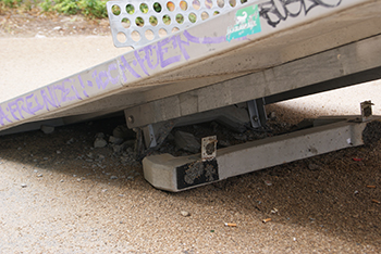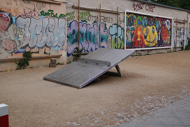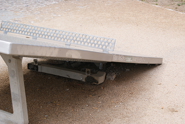 Die Freifläche im Jan-Hus-Weg war eigentlich als Ort der Begegnung für alle BewohnerInnen des Kiezes gedacht. Mit Bouleplatz, Sitzgelegenheiten und einer Tischtennisplatte. Am Wochenende wurde die Tischtennisplatte nun zerstört.