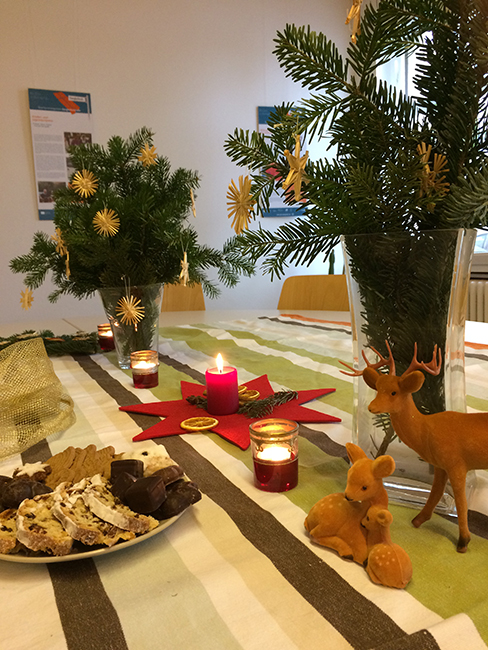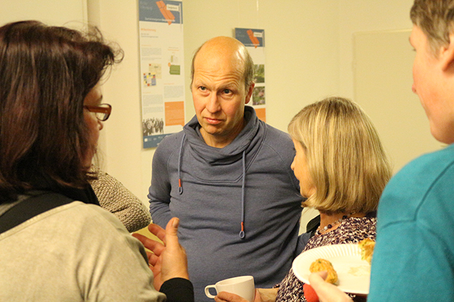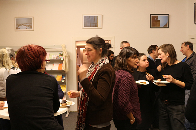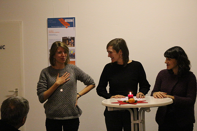 Knapp 40 Gäste kamen am Mittwoch, den 7. Dezember 2016 zur traditionellen Weihnachtsfeier von Quartiersrat und Aktionsfondsjury. Zur guten Tradtion des Treffens gehört die Vorstellung einzelner Projekte. Dieses Jahr präsentierte Eventilator sein Sprach-, Lese- und Bildungsprojekt "Mobile Sprachwerkstatt" und die Alte Feuerwache das Projekt "Gemeinsam Gelingen Ganghoferkiez – Übergang Schule-Beruf". Anschließend berichtete Pfarrer Christoph Hartmann über die bevorstehenden Umbaumaßnahmen in der evangelischen Brüdergemeine zum Kiez- und Begegnungszentrum Rixdorf. Zum Abschluss der Weihnachtsfeier gab es noch nette Gespräche am kalten Buffet.