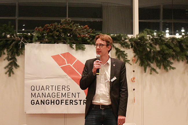 Nach der Begrüßung durch das Team des Quartiersmanagements eröffnete Bezirksstadtrat Jochen Biedermann offiziell den Ehrenamts-Empfang. Biedermann betreut nach dem Rücktritt von Bildungs-Stadtrat Rämer dessen Ressort übergangsweise mit. "Ich habe dadurch so viele Termine, dass ich einige absagen musste. Aber nicht den heutigen Ehrenamtsempfang. Weil es wichtig ist, Ihnen Danke zu sagen. Sie machen durch ihr Engagement den Kiez reicher." Das zweite Thema, das Biedermann ansprach, bezog sich auf die rasanten Veränderungen Neuköllns. Er forderte alle Anwesenden auf, dabei mitzuhelfen, die Mietsteigerungen in den Kiezen zu begrenzen. Das Bezirksamt tue alles, um gegen ungerechtfertigte Mieterhöhungen vorzugehen, könne aber nur handeln, wenn es davon Kenntnis bekäme. Abschließend warb der Bezirksstadtrat für die Unterstützung obdachloser Menschen, deren Zahl auch in Neukölln zugenommen habe.Im Anschluss an Jochen Biedermann folgte der eigentliche Höhepunkt des Abends: Die anwesenden ehrenamtlich Tätigen bekamen aus der Hand des Stadtrats die Berlin-Brandenburger Ehrenamtskarte überreicht. Die Karte bietet verschiedene Vergünstigungen wie den ermäßigten Eintritt in Museen.