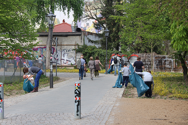Der Kiezputz, der zweimal im Jahr stattfindet und zum Projekt „Umweltbewusstsein stärken im Ganghoferkiez“ der Stadtagenten gehört, rückt einem Problem zu Leibe, das von vielen BewohnerInnen als drängend empfunden wird: der Vermüllung des öffentlichen Raumes. Die Putzaktion soll zeigen, dass mit ein wenig Engagement und Aufmerksamkeit die Vermüllung deutlich reduziert werden kann.