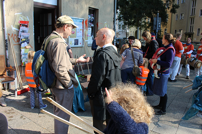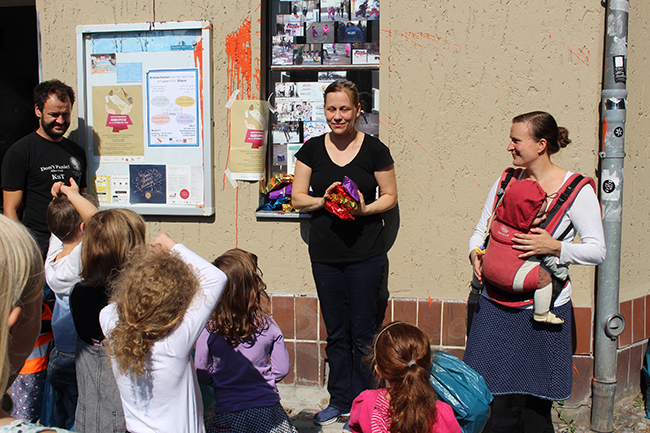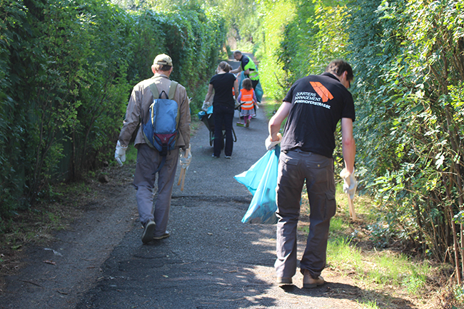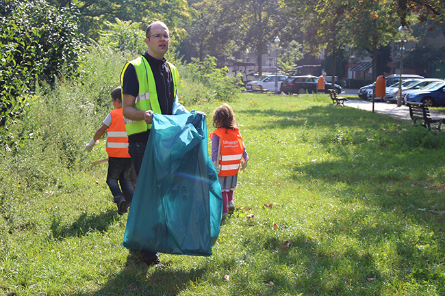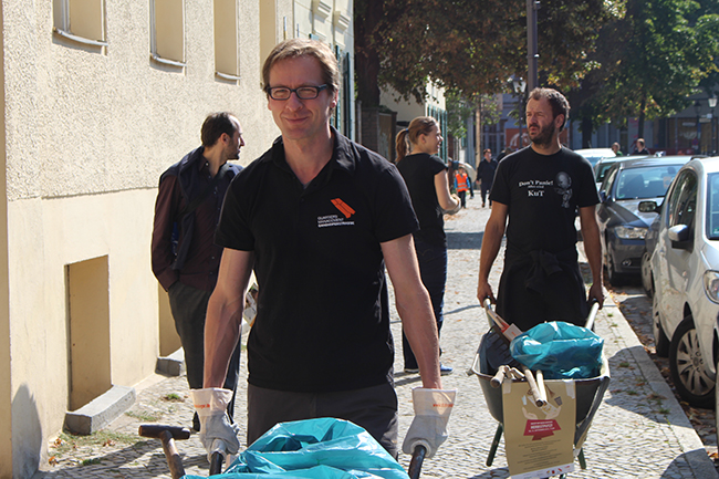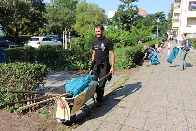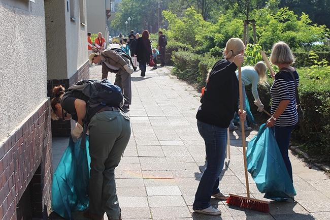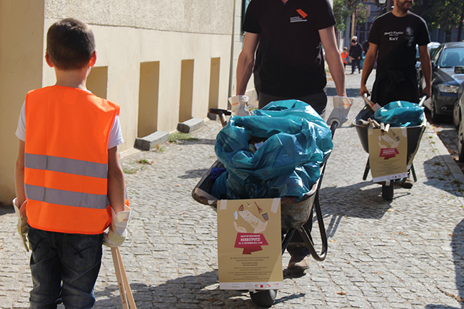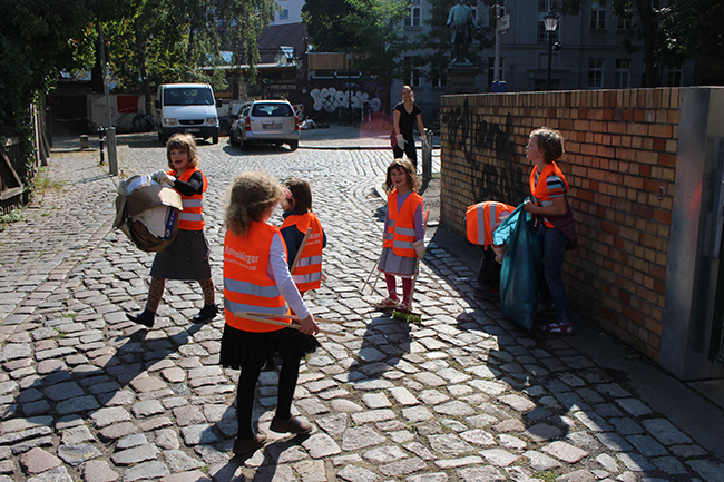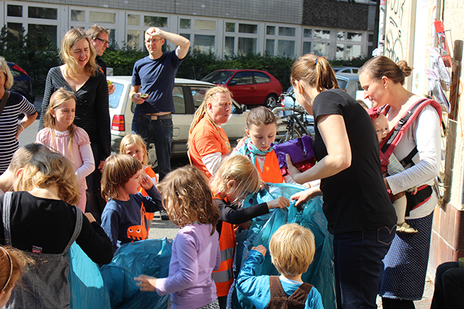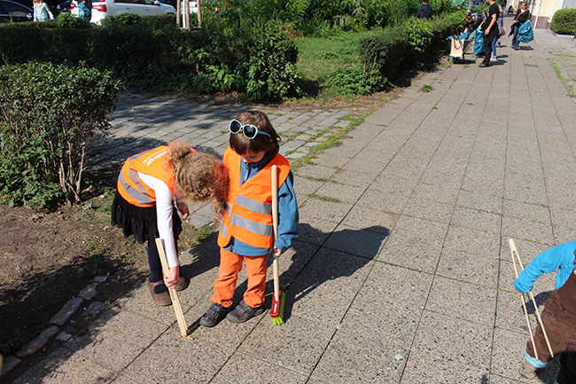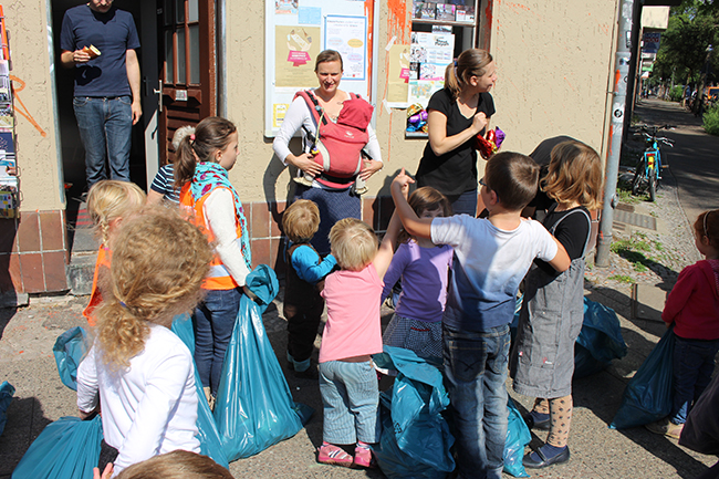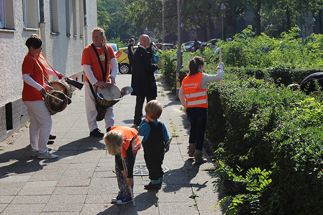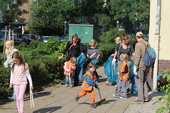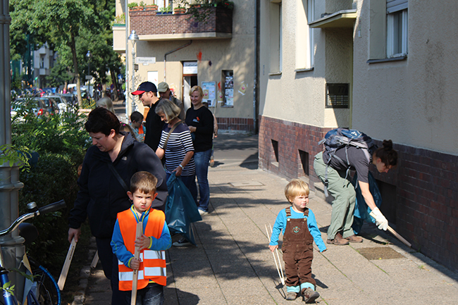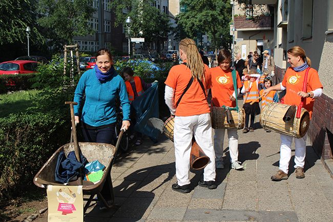 Nicht die Größe, die Menge machte es: Beim Kiezputzsammelwettbewerb zählte jede kleine Kippe, die aufgesammelt wurde. Am Samstag, 12. September zogen (vor allem sehr junge) AnwohnerInnen durch den Kiez, um für einen achtsamen Umgang mit dem öffentlichen Raum zu werben. Ziel der Aktion war es, die Nachbarn und Passanten dafür zu gewinnen, den Müll in Abfalleimer und nicht auf die Straße zu werfen. Das Percussion-Trio Buschfunk Berlin lieferte den nötigen Sound zur Müllsammeltour, die vom QM-Büro zum Verkehrsschulgarten, über den Wanzlikpfad zur Richardstraße und wieder zurück führte.