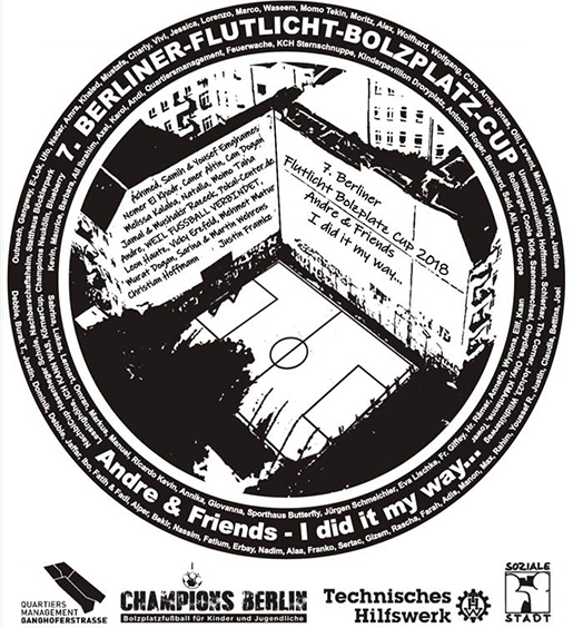 Der 7. Berliner Flutlicht Bolzplatz Cup (#dasOriginal mit dem Technischen Hilfswerk) findet diesmal unter dem Motto: „Andre & Friends - i did it my way", statt.