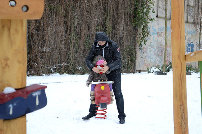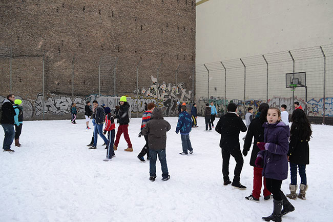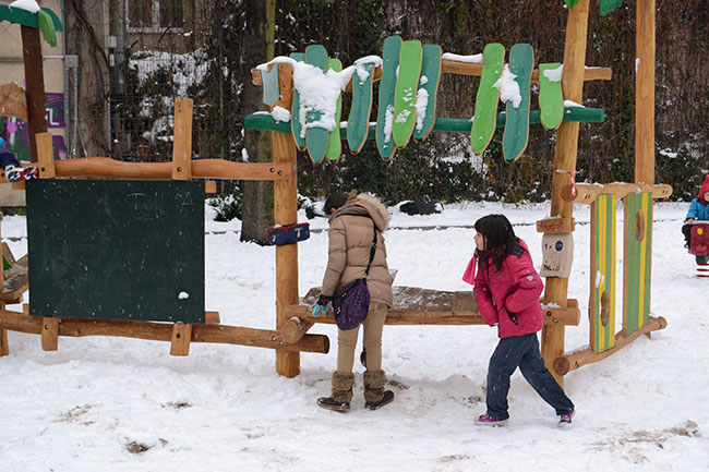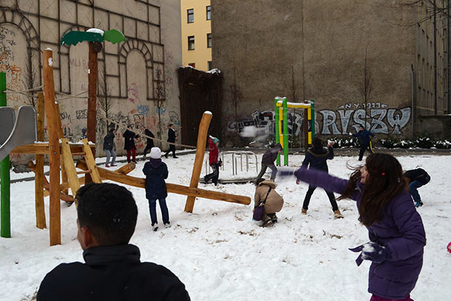 Die Kinder auf dem Spielplatz blieben vom Wetter unbeeindruckt: Sie verlegten sich aufs Schneeballwerfen.