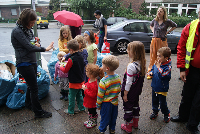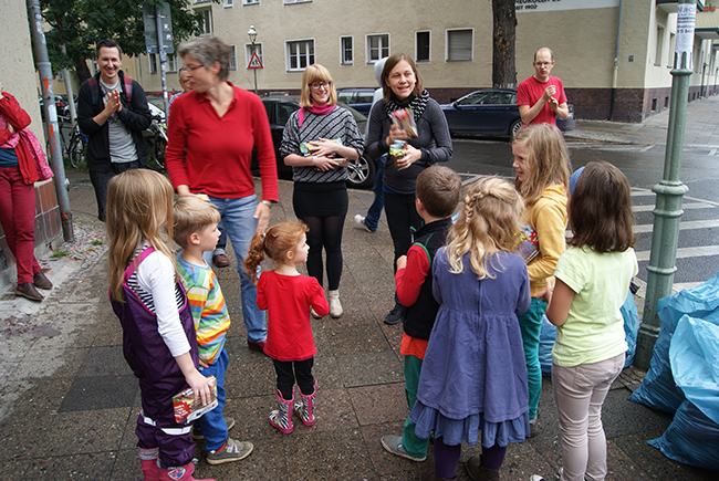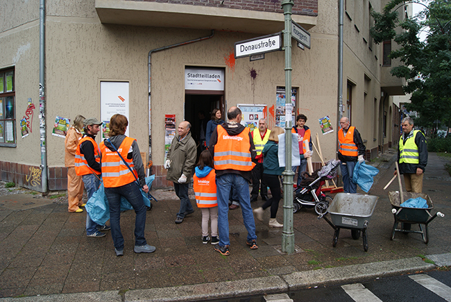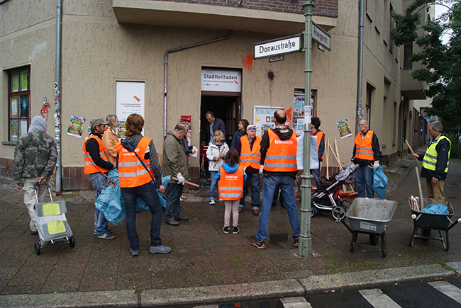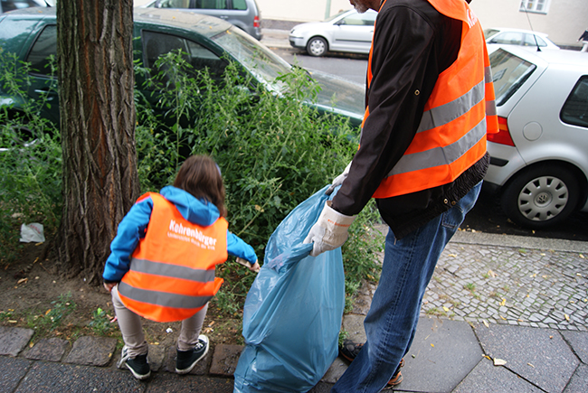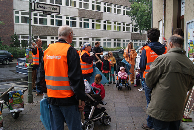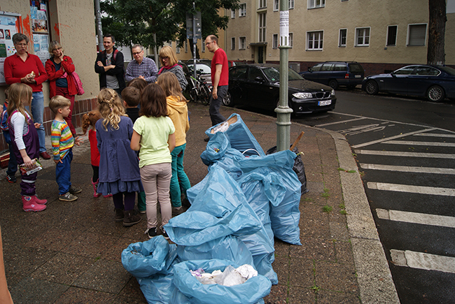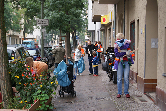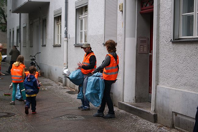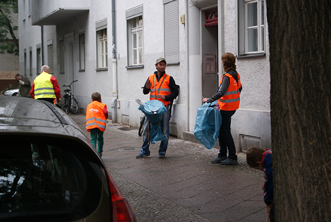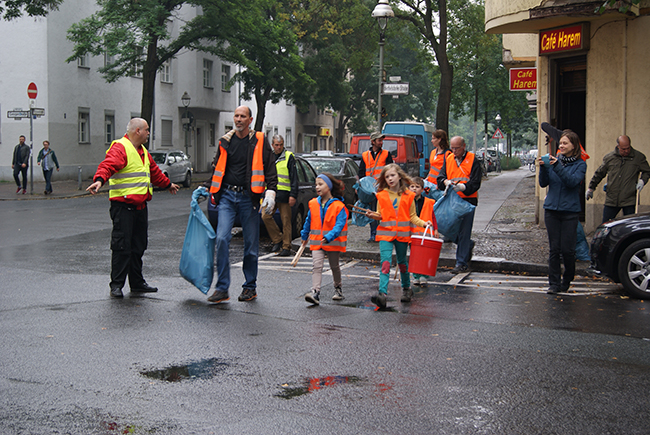 Das Wetter war schlecht, aber die Motivation war gut: Trotz Nieselregens sammelten viele - vor allem junge - fleißige Helfer wieder tütenweise Müll im Kiez. Diesmal wurde sogar ein Geldschatz gefunden!