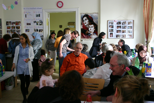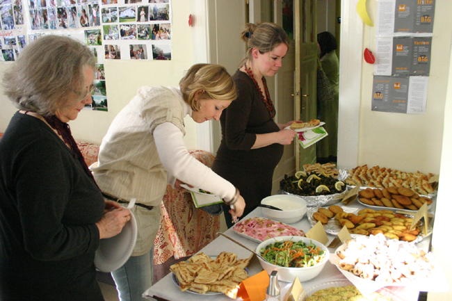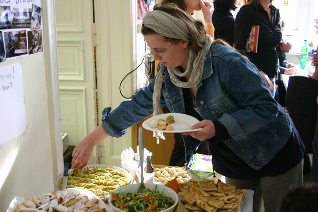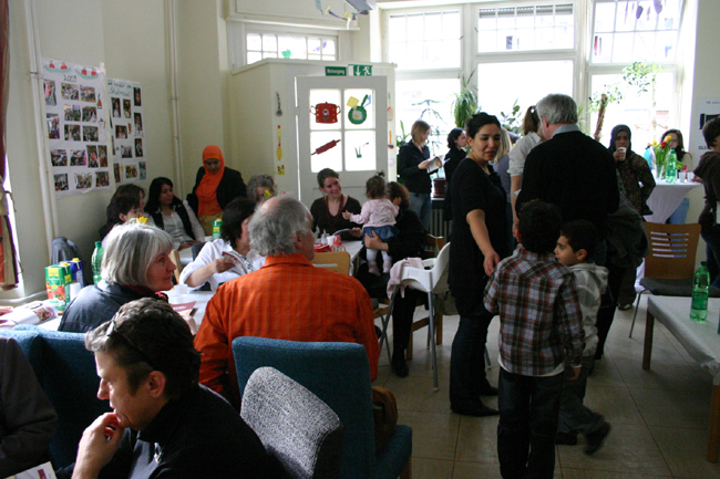 Am Freitag, den 26. März war es soweit: Das Kochbuch "Wir kochen. Unsere Lieblingsrezepte aus dem Shehrazad in Neukölln" des Mutter- und Kindtreffs in der Roseggerstraße wurde der Öffentlichkeit vorgestellt. In dem Kochbuch werden 26 Gerichte präsentiert, die die Frauen des Shehrazad zusammengestellt haben. Die Rezepte sind jeweils in Deutsch und der Originalsprache gedruckt, zu jedem Rezept gibt es auch eine kleine Geschichte. Eine Auswahl der Gerichte konnte auf der Release-Party sogar probiert werden.